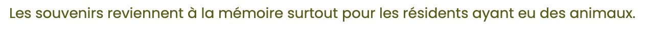 Moments d’apaisement où les résidents oublient les soins douloureux et parfois la solitude.