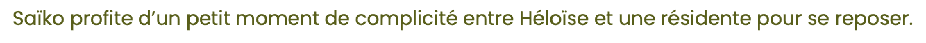 Le calme et la gentillesse de Saïko fait oublier la crainte ou l’appréhension que pourraient avoir certains résidents avec les animaux.