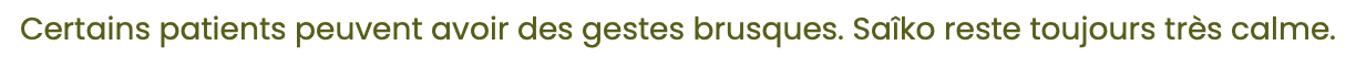 Petite pause réconfortante avec Saïko et sa gentillesse pour l’équipe médicale après des moments difficiles ou des journées éreintantes.