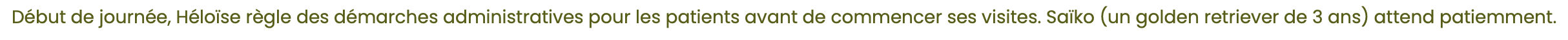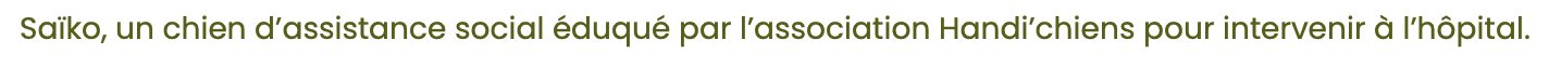 Dans un monde où l'empathie et le soutien mutuel prennent une place prépondérante, le partenariat entre les humains et les animaux révèle des dimensions insoupçonnées de guérison et de confort. C'est dans cet esprit que l'association Handi’chiens œuvre depuis des années, en formant des chiens d'assistance dédiés à améliorer le quotidien des personnes en situation de handicap ou de fragilité. Ce reportage met en lumière une journée typique d'Héloïse, assistante sociale à l'hôpital gériatrique Pierre Garraud de Lyon, et de Saïko, un golden retriever formé par Handi’chiens, illustrant l'impact profond de leur collaboration sur les patients et le personnel soignant. Héloïse n'est pas une assistante sociale ordinaire. Durant la crise de la Covid-19 en 2020, elle fut l'une des rares à maintenir le contact humain avec les résidents de longue durée, palliant l'absence de visites familiales. Cette période éprouvante a renforcé sa conviction de l'importance du lien humain dans les soins. Cherchant à enrichir son approche, Héloïse s'est tournée vers Handi’chiens Lyon pour intégrer un chien d'accompagnement social dans sa pratique professionnelle. Après une formation rigoureuse de deux ans, Saïko a rejoint Héloïse, non seulement comme collègue mais aussi comme membre de sa famille, s'adaptant à un quotidien partagé entre interventions à l'hôpital et repos bien mérité à la maison. Leur duo offre une nouvelle dimension au soin, où la présence réconfortante de Saïko apporte une touche de douceur et de réconfort, essentielle tant pour les patients que pour le personnel. Le quotidien d'Héloïse et Saïko est rythmé par les visites aux résidents, où chaque interaction est une opportunité de soulager, de rassurer et de stimuler. Saïko s’invite de temps en temps aux séances d’activité physique adaptée, transformant des moments potentiellement stressants en instants de complicité et de détente. Le personnel soignant lui-même trouve dans la présence de Saïko un précieux sas de décompression, une bouffée d'oxygène dans leur emploi du temps chargé. L’équipe médicale envisage même la présence Saïko lors de soins plus compliqués (pansements difficiles…). La collaboration entre Héloïse et Saïko a révolutionné l'approche des soins au sein de l'hôpital. Les patients, reconnaissant le duo dès leurs premiers pas dans les couloirs, s'ouvrent plus facilement, facilitant ainsi les échanges et le suivi social.