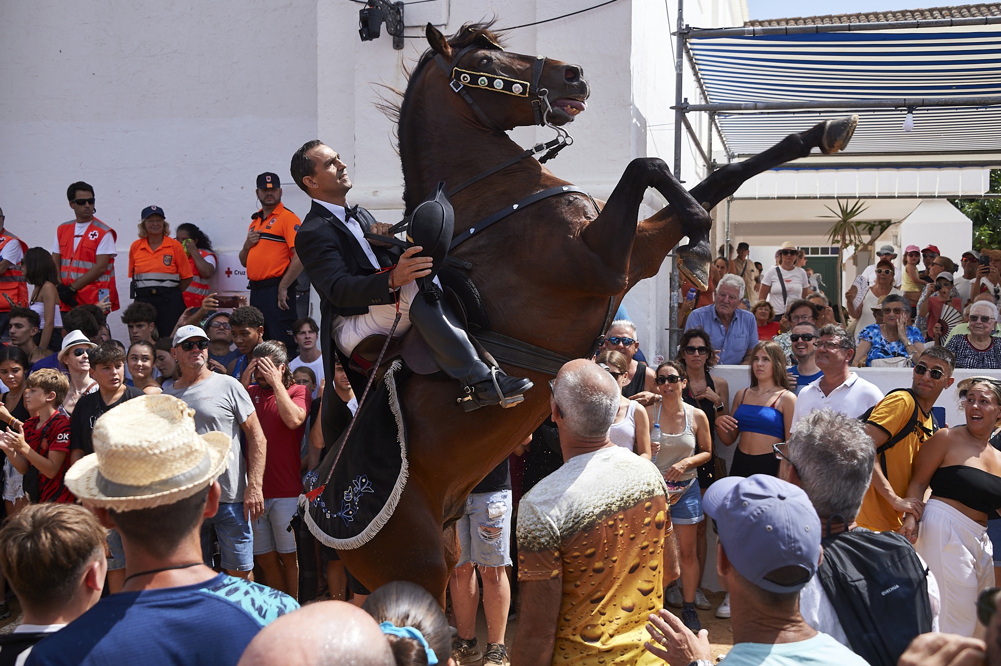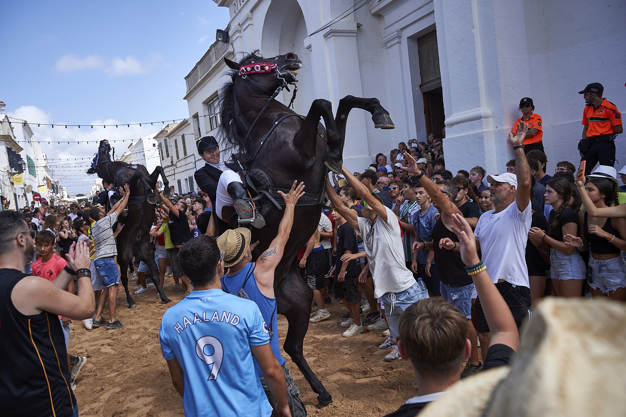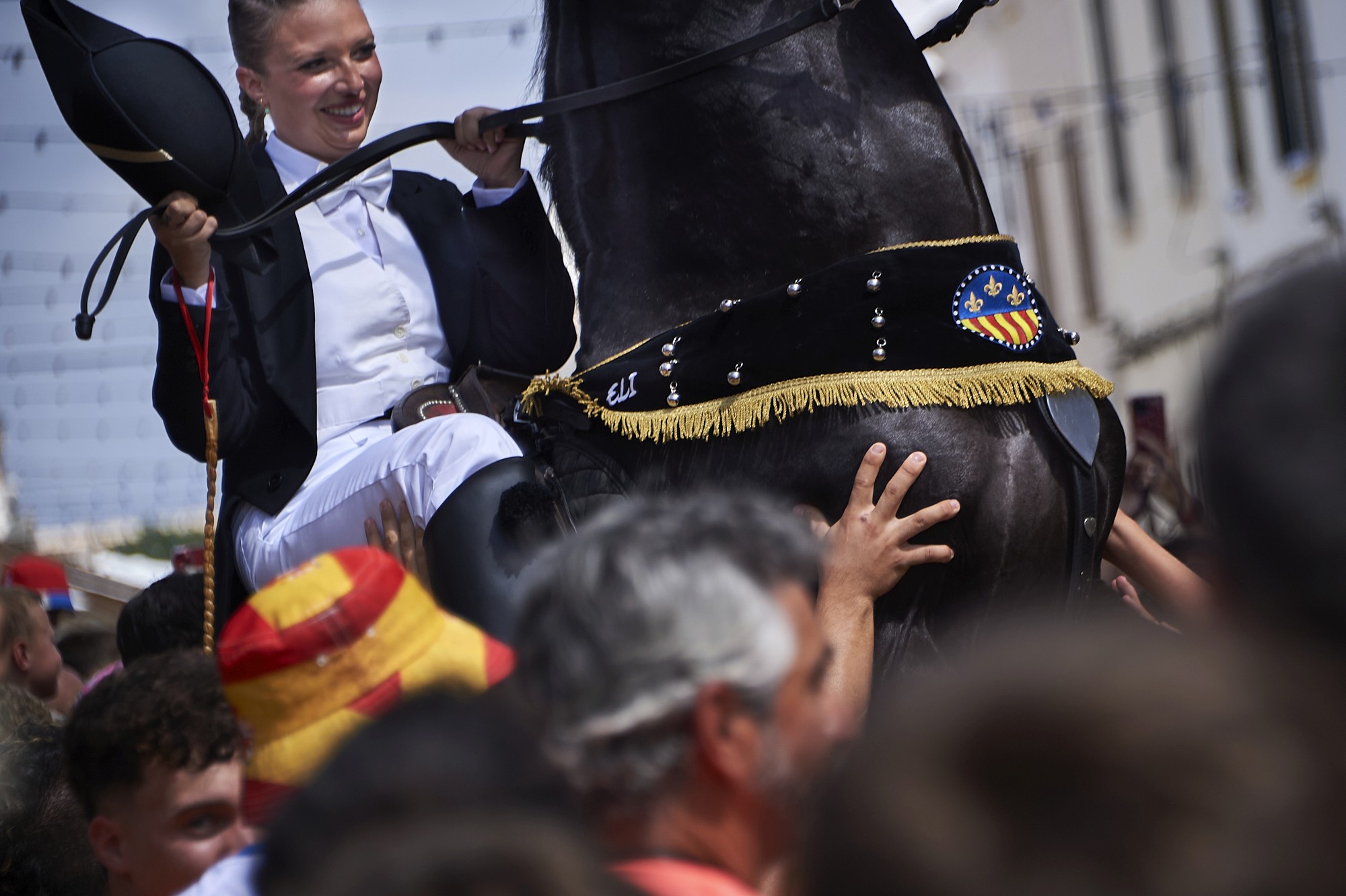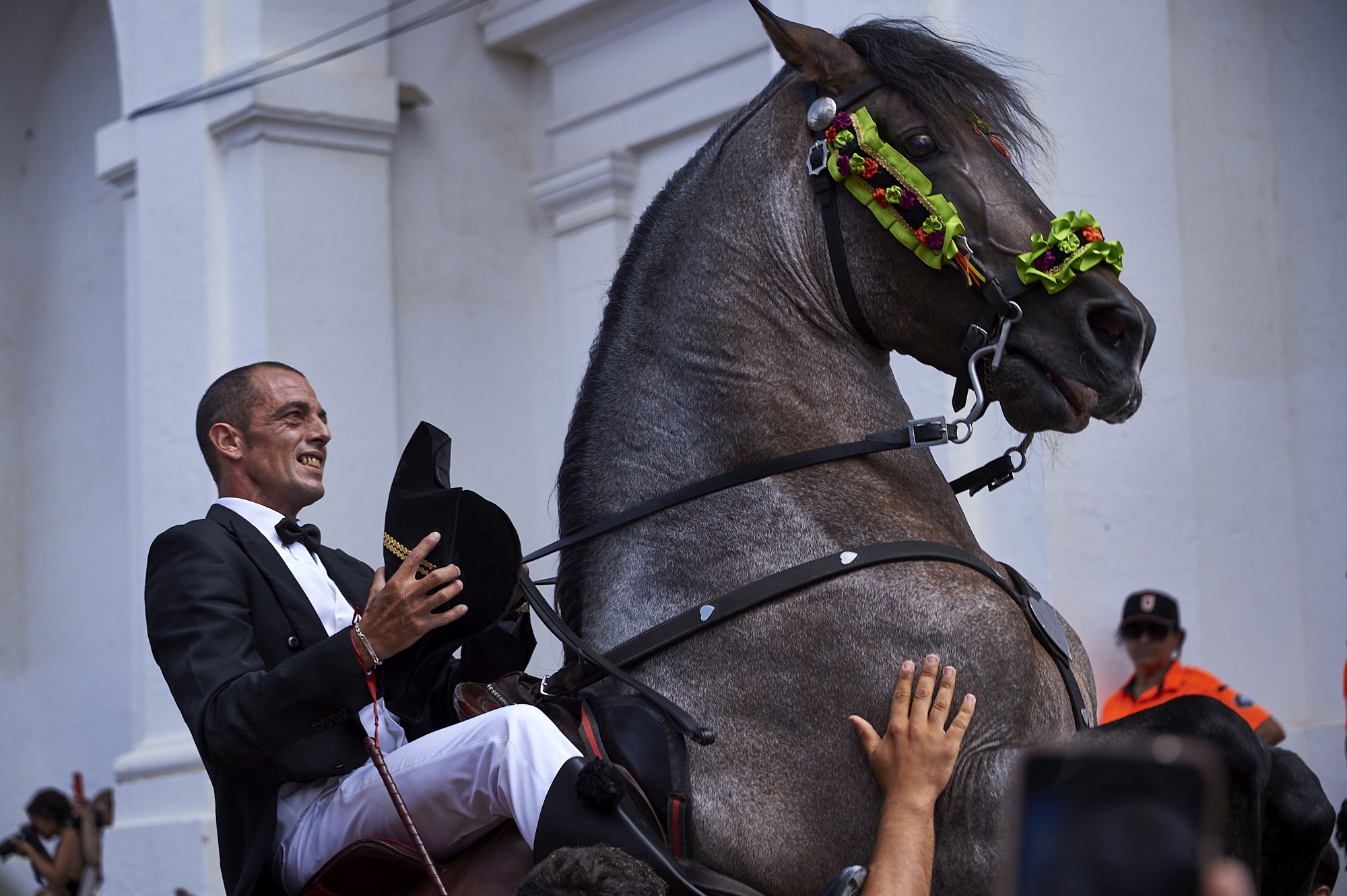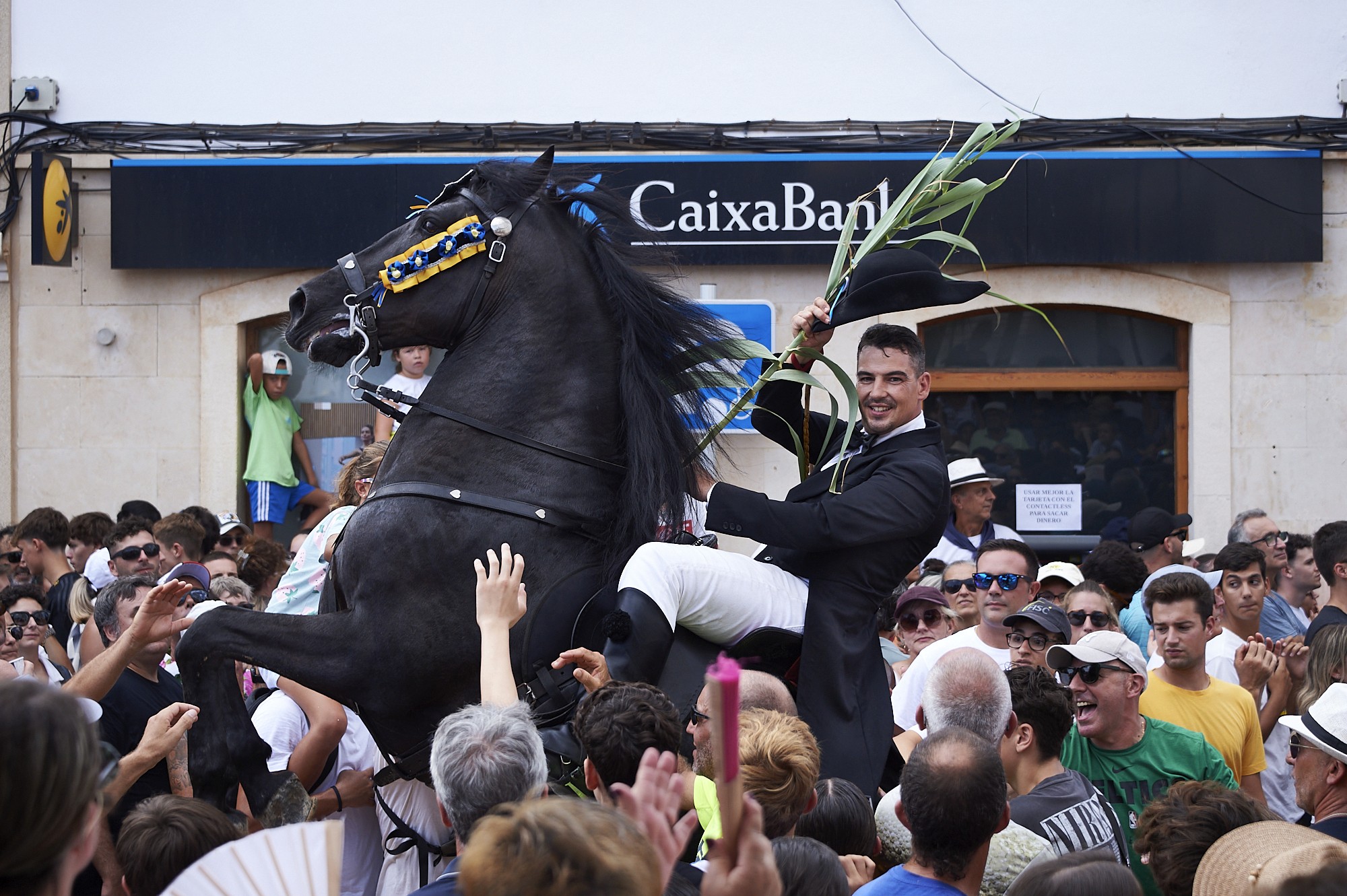 Les Fêtes de Sant Lluís sont l’une des plus belles expressions de l’âme minorquine. Au cœur de ces célébrations, les chevaux noirs de l’île occupent une place presque sacrée. Ils exécutent le Jaleo, cette danse spectaculaire où ils se dressent sur leurs pattes arrière au milieu de la foule, emportés par les sonorités puissantes de la fanfare. Les participants tentent alors de toucher la poitrine des chevaux cabrés, un geste symbolique devenu l’un des moments les plus attendus et les plus intenses des festivités. À travers cette série, j’ai voulu saisir cette relation singulière entre l’homme et l’animal. Une connexion faite de confiance, de maîtrise et de respect, qui révèle la profondeur de cette tradition. Les cavaliers — les caixers — portent en eux l’histoire des différentes classes sociales de l’île. Ils défilent en habits traditionnels, mènent les processions religieuses, et incarnent ce lien ancien qui unit Minorque à ses chevaux. Mais les fêtes ne se résument pas à leur solennité. Elles sont aussi le théâtre d’une effervescence populaire où la créativité s’exprime librement : défilés de carrosses décorés, rues animées, moments de joie partagée. Cette dualité — entre ferveur religieuse, rite équestre et célébration collective — est au cœur de mon travail. Les cavaliers de Sant Lluís, ce sont des gestes hérités, des regards complices, des chevaux puissants, et toute une communauté rassemblée autour d’un patrimoine vivant. Une fête où chaque instant montre combien cette tradition reste essentielle à l’identité minorquine.