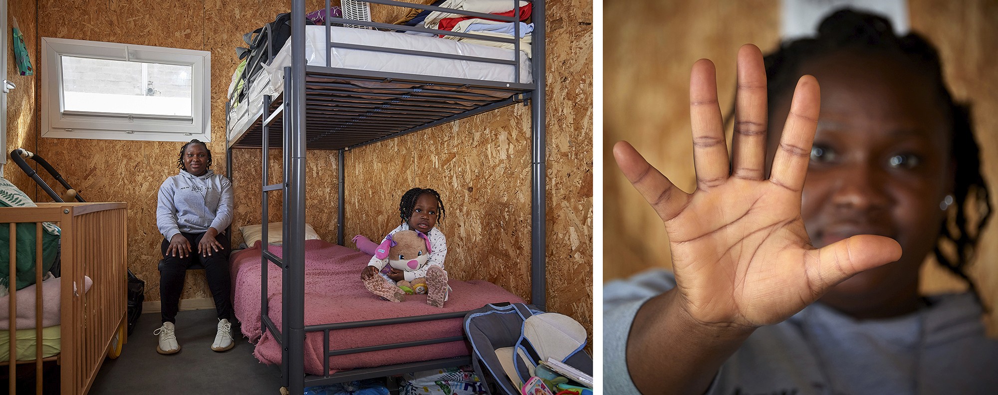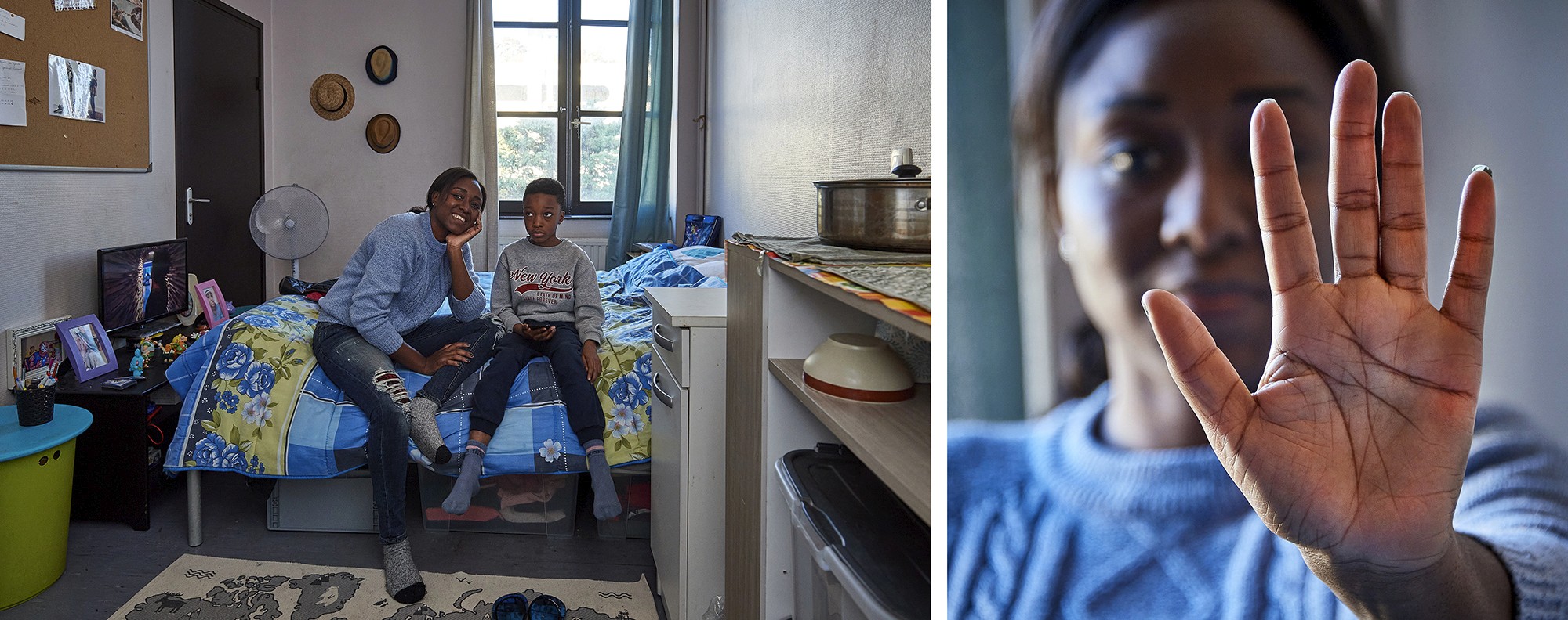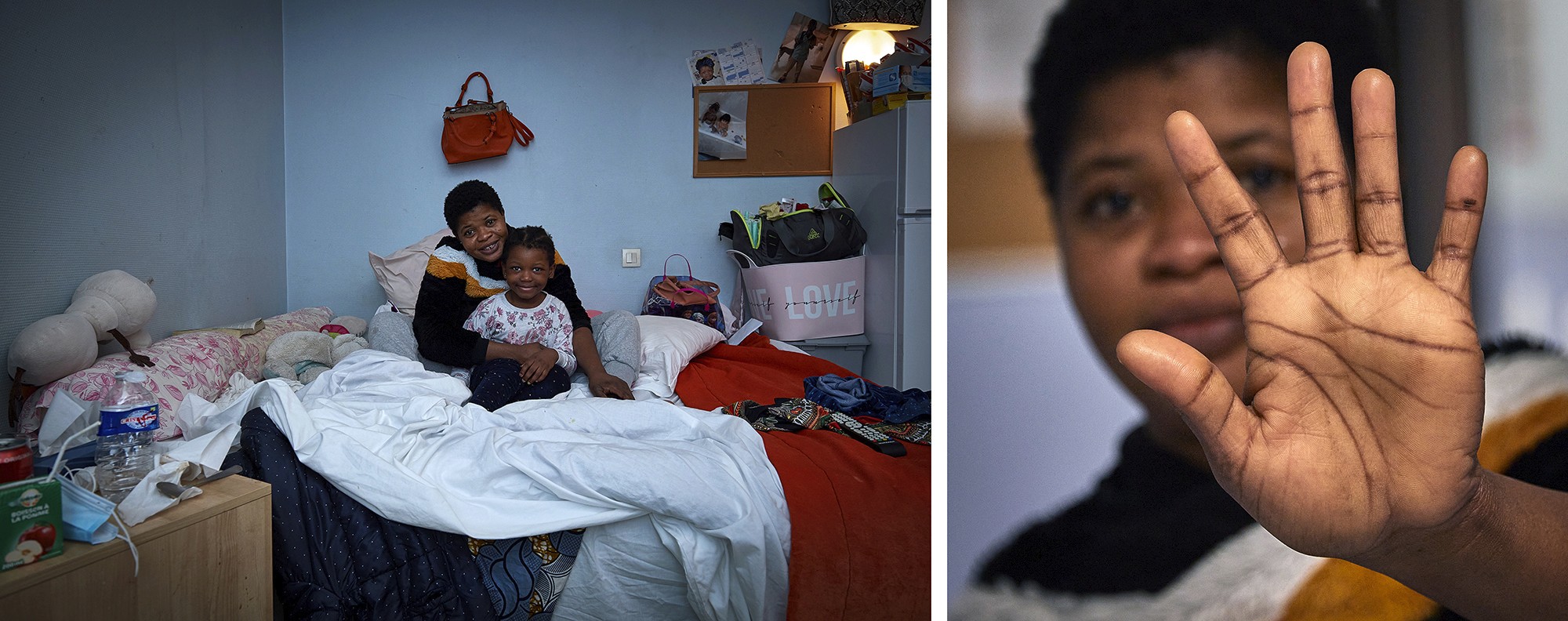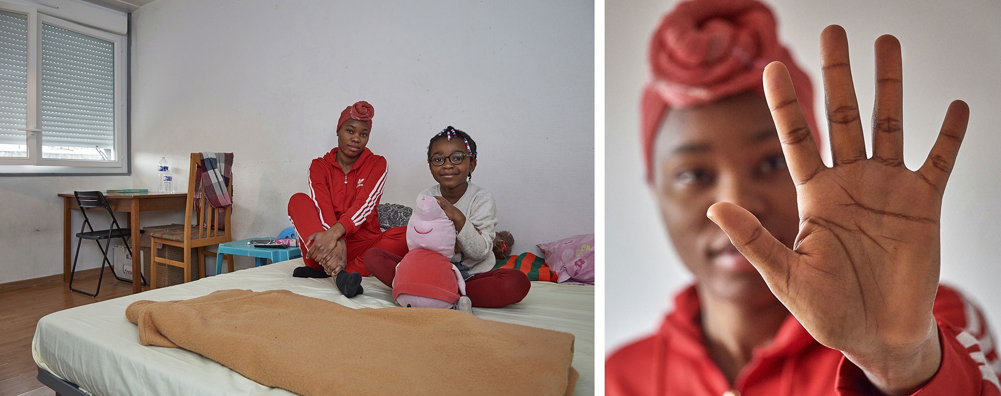 Hermine, originaire du Congo, vit dans le centre depuis près de 6 ans avec sa fille Chirmine, 10 ans. Ancienne coiffeuse, elle tresse les cheveux des autres résidentes et espère exercer son métier en France. Très fusionnelles, elles ont entièrement redécoré leur chambre, créant un véritable cocon.