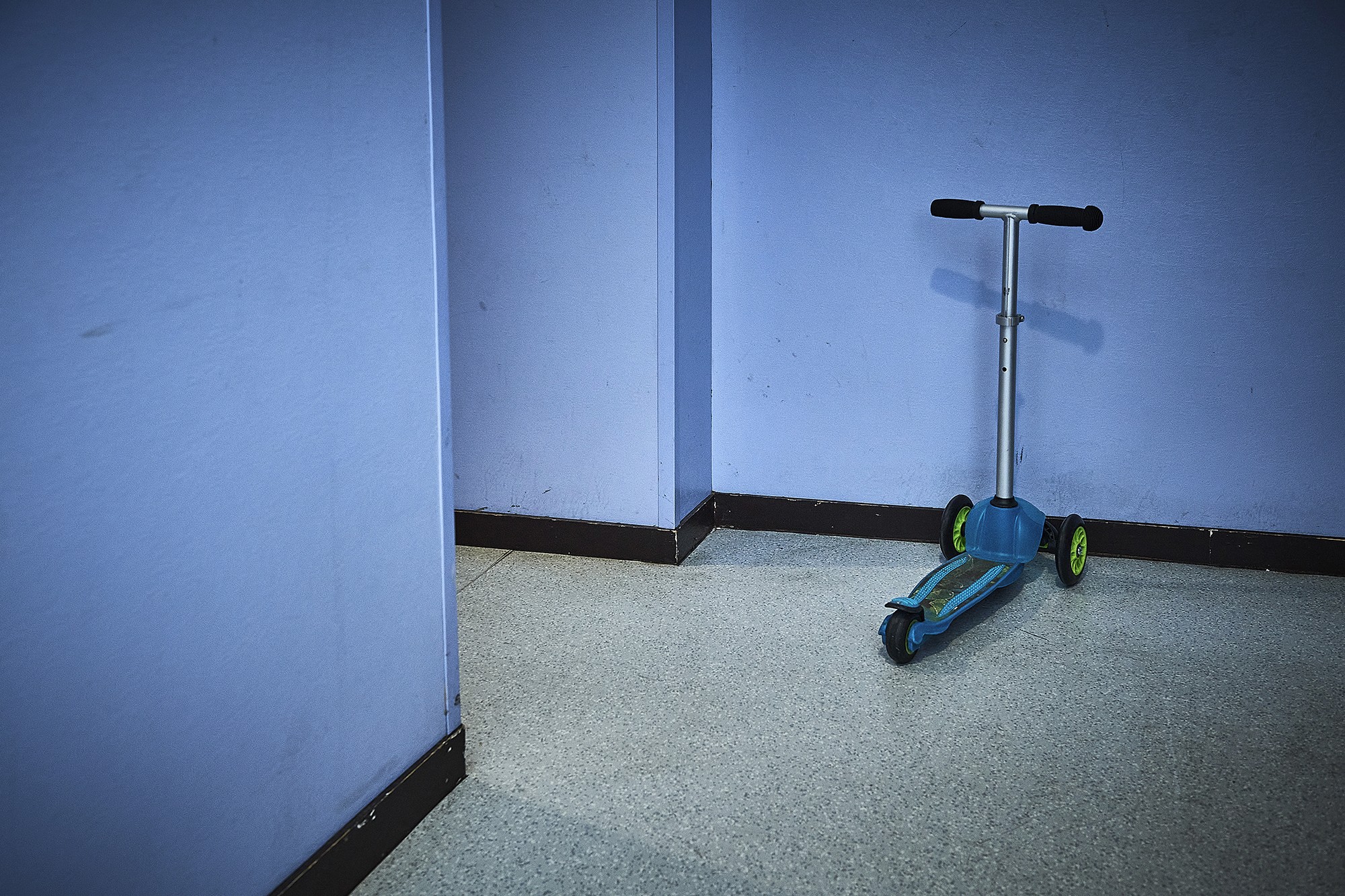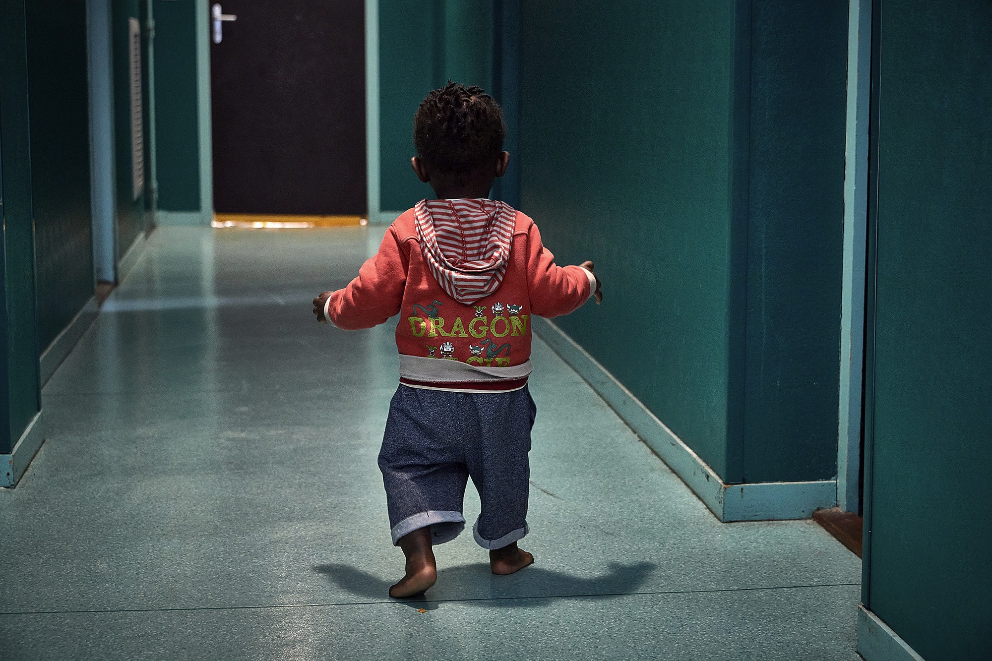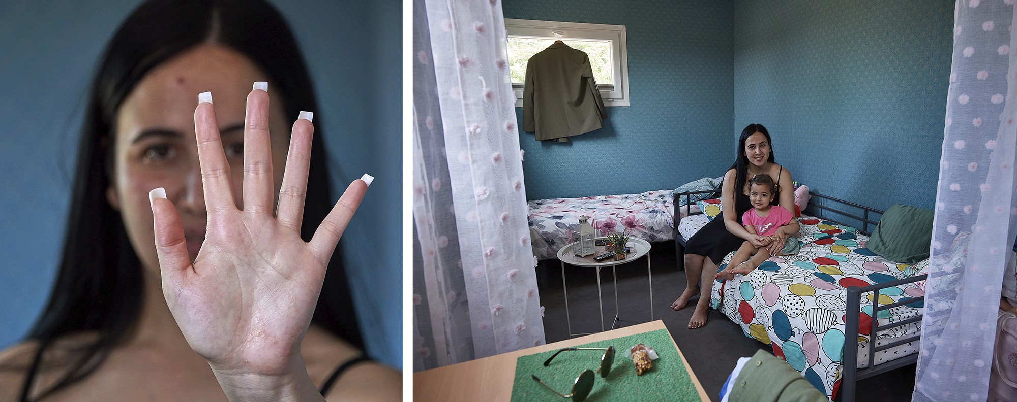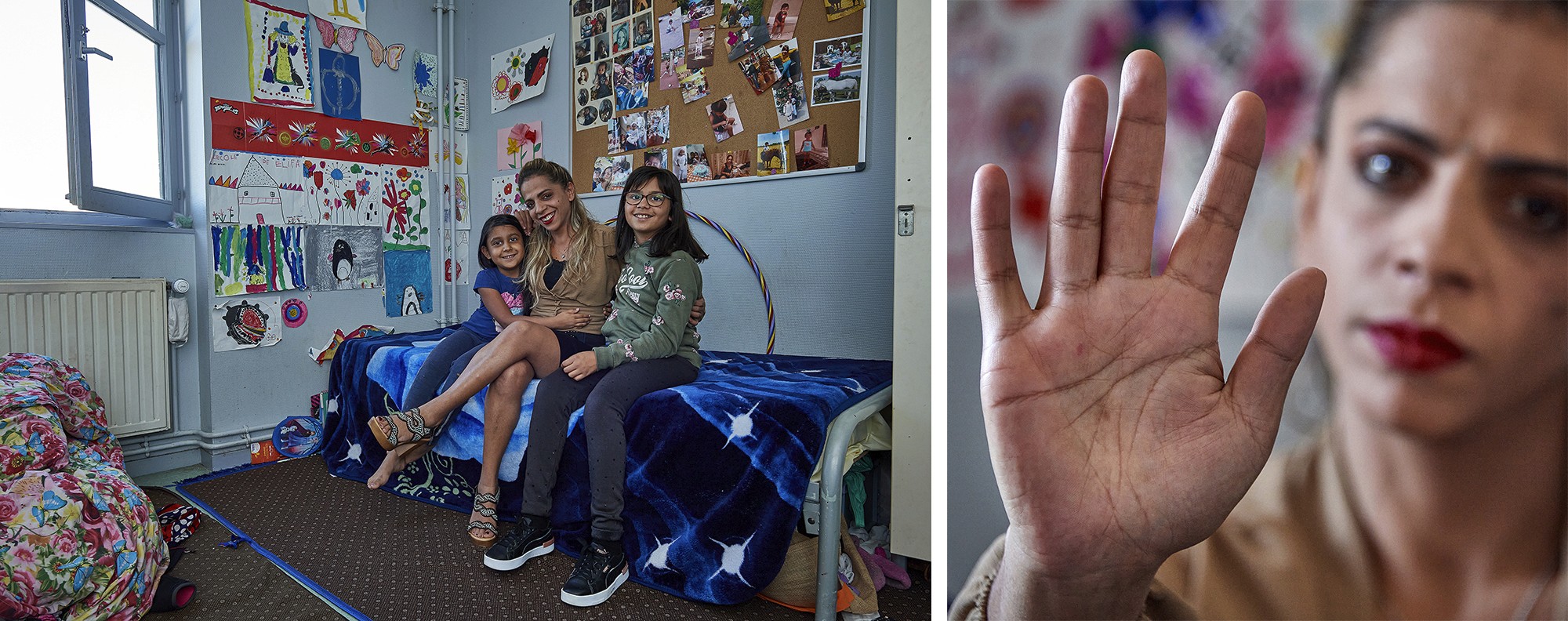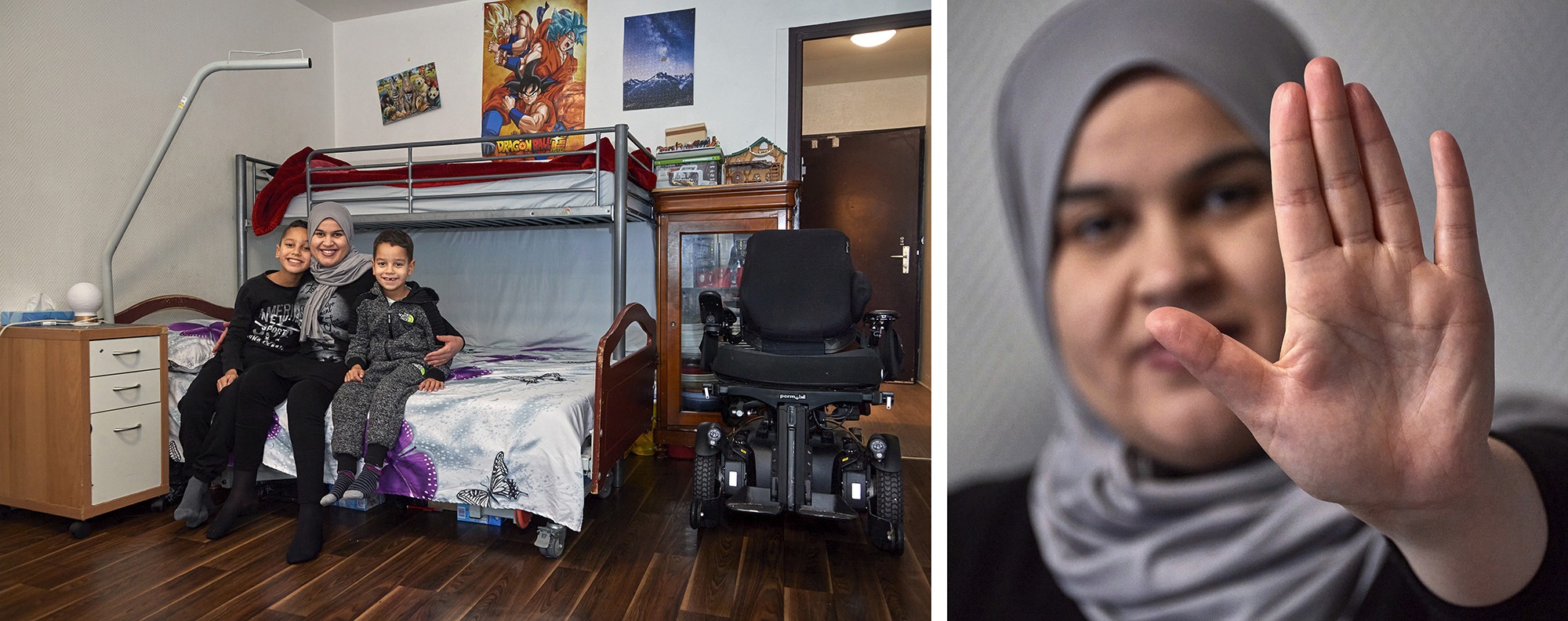 Zoubeyda, originaire d’Algérie, vit au centre depuis 2014 avec ses deux fils Iyad et Aymen. Après un accident qui l’a privée de l’usage de ses jambes, elle accepte pour la première fois d’être photographiée, hors de son fauteuil. Ses fils, très attentionnés, sont sa fierté, en particulier Iyad, élu au conseil municipal des enfants.