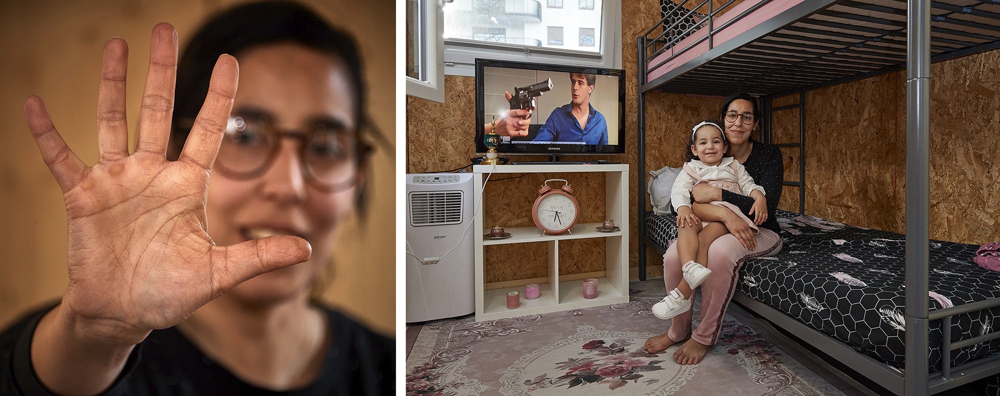 Rabha, 32 ans, et sa fille Helya, 3 ans, vivent depuis 10 mois dans un tiny house qu’elle a aménagé seule. En Algérie, elle travaillait dans une mairie. Quand le cafard la prend, elle écoute la chanteuse libanaise Elissa Khoury. Elle espère un futur plus serein pour sa fille et elle-même.