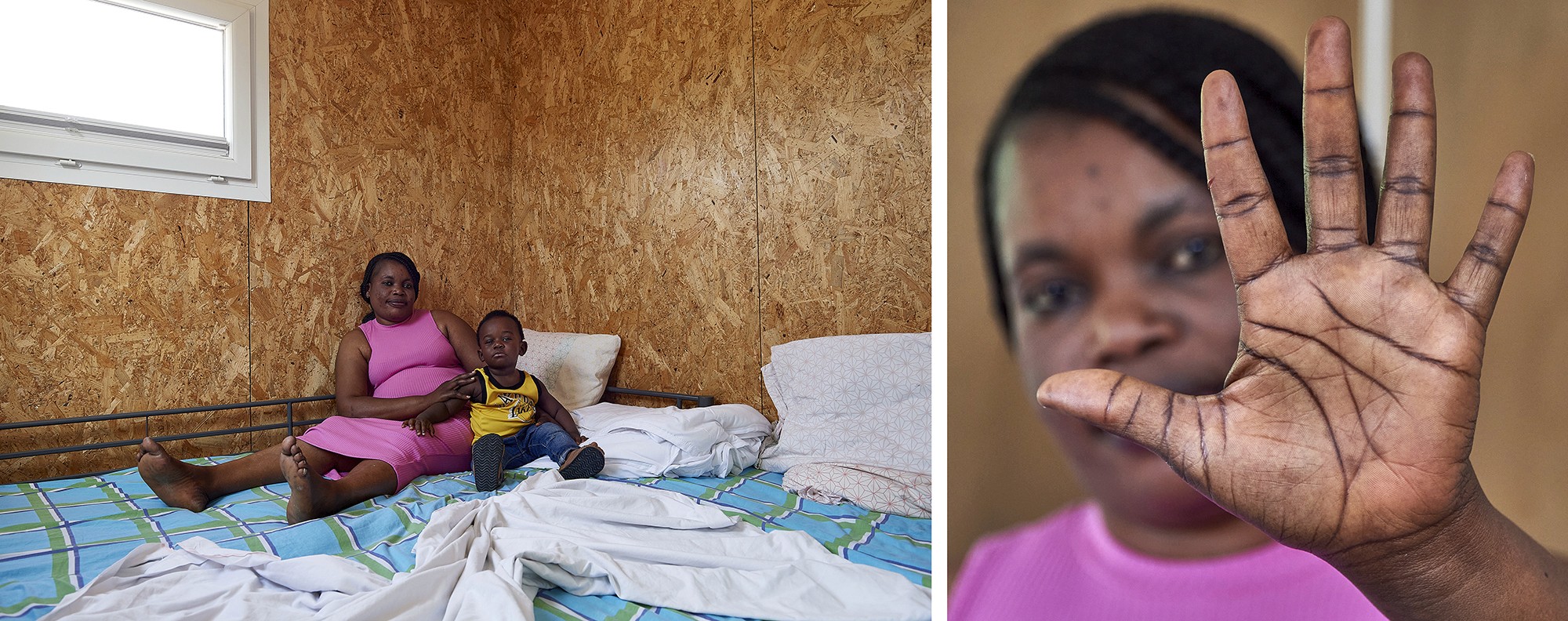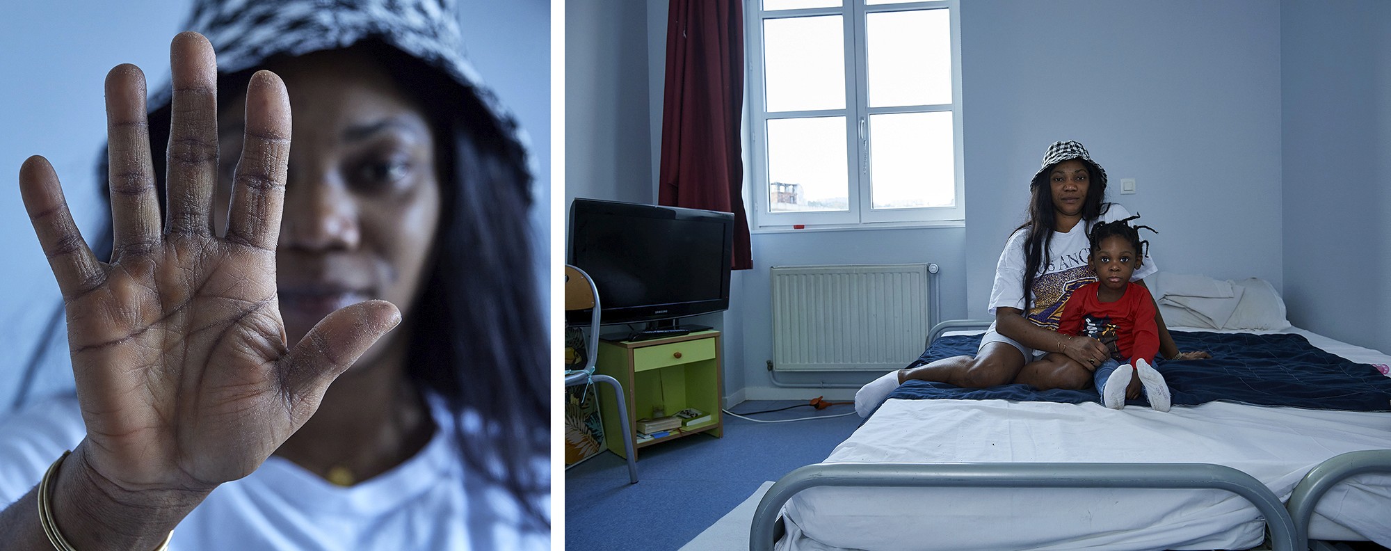 Elles ont quitté leur pays pour fuir la misère, la violence, l’isolement ou pour tenter de rejoindre un conjoint déjà parti. Le voyage, souvent long et par étapes, les a laissées seules, sans langue commune, devenant des cibles faciles pour les réseaux de prostitution ou de passeurs. À leur arrivée en Europe, beaucoup découvrent une nouvelle précarité : des couples brisés, des violences conjugales, et parfois la rue comme seul refuge. Certaines ont été mises à l’abri in extremis par l’association Notre-Dame des Sans-Abri, dans un ancien hôtel ou des tiny houses proches d’une bretelle d’autoroute. Là, elles tentent de se reposer et de se reconstruire, dans de petites chambres qu’elles partagent avec leurs enfants. Au fil des rencontres, j’ai entendu des récits de douleurs : une mère calmant son enfant autiste, une autre décrivant son « chemin de croix », une jeune femme évoquant un accouchement seule dans un squat, d’autres encore taisant les violences par peur de représailles. Je leur ai proposé de les photographier dans ce refuge, sur le lit où elles dorment avec leurs enfants. Un espace minuscule mais enfin sûr. Ce travail témoigne de ce moment fragile où l’on reprend souffle, où l’on se reconstruit. Ces femmes sont des passagères : entre un passé douloureux et l’espoir d’un avenir plus digne. Merci à Myriam, Laurence, Anne-Lise et Perrine pour leur confiance et leur soutien.